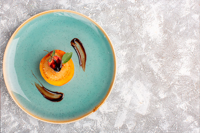 Atrévete a utilizar platos con colores vibrantes o diseños atrevidos que complementen la identidad de tu restaurante. Los platos coloridos pueden ser especialmente efectivos en menús de cocina fusión, donde cada plato es una obra de arte.
